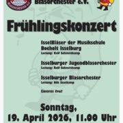 Das Isselburger Blasorchester lädt herzlich zum Frühlingskonzert am Sonntag, 19. April 2026, um 11.00 Uhr in die Stadthalle Werth ein. Freuen Sie sich auf ein abwechslungsreiches Konzertprogramm mit den IsselBläsern der Musikschule Bocholt-Isselburg, dem Isselburger Jugendblasorchester und dem Isselburger Blasorchester. Der Eintritt ist frei.